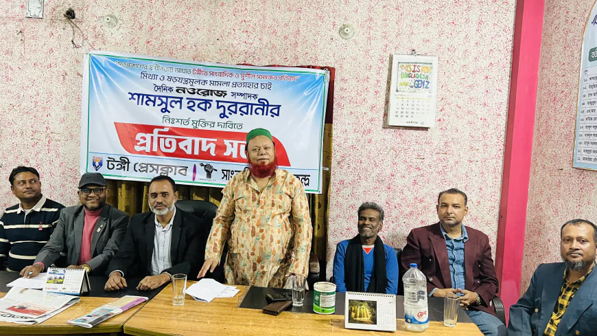 মাকসুদ আহমাদ রবিন:- সত্য প্রকাশের স্বাধীনতায় আঘাত ও মিথ্যা মামলার প্রতিবাদে দৈনিক নওরোজের সম্পাদক শামসুল হক দুর্বানীর নিঃশর্ত মুক্তির দাবিতে টঙ্গী প্রেসক্লাবে এক প্রতিবাদ সভা অনুষ্ঠিত হয়েছে।